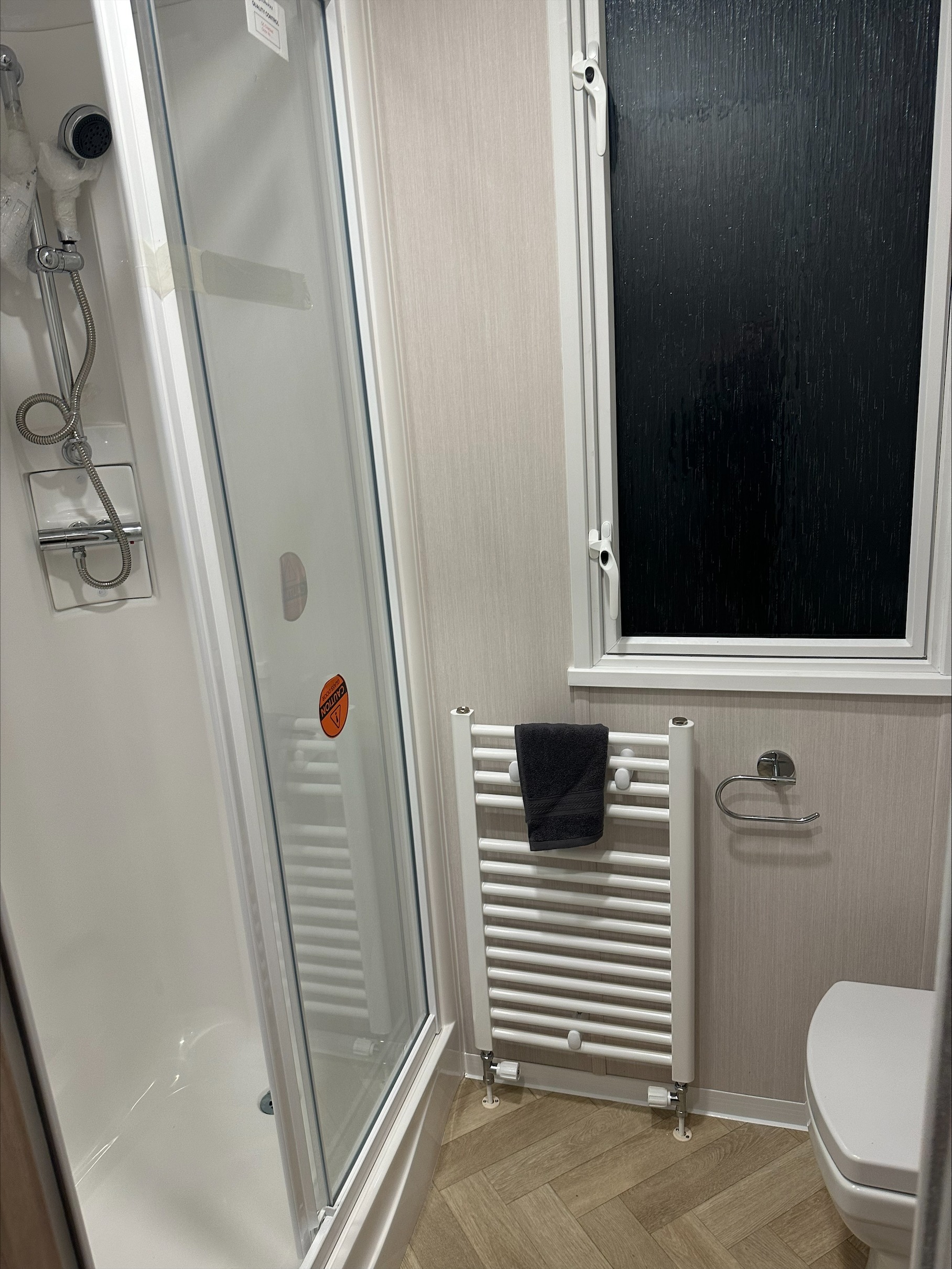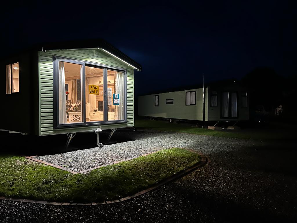 The Vendee lodge has the Swift exterior look about it and that’s an attractive, modern profile with full French doors, grey finish window frames, full guttering and a Can-Excel finish.