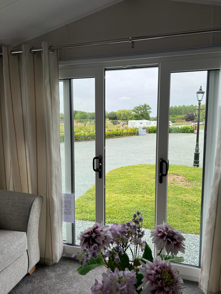 The Vendee lodge has the Swift exterior look about it and that’s an attractive, modern profile with full French doors, grey finish window frames, full guttering and a Can-Excel finish.